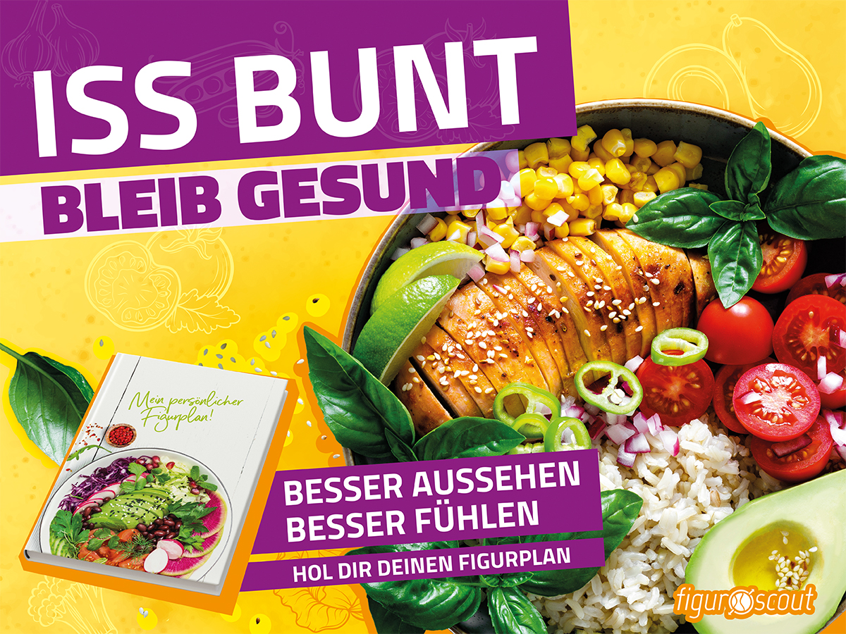 2. Weniger zuführen. Dies klingt in der Regel nach einer einschneidenden „Diät“. Nicht so beim Konzept „figurscout“. Kleine Veränderungen in der Zusammenstellung des Essens bringen die gewünschte Kalorienreduktion trotz voller Teller. Für die Umsetzung im Alltag erhalten Sie im Studio zunächst Ihren ganz persönlichem „figurplan“. Hier sind die Kalorien genau an Ihren Grundumsatz angepasst, also ganz speziell für Sie berechnet und die Rezepte danach zusammengestellt. Auch Unverträglichkeiten oder „ich mag nicht“ Lebensmittel werden berücksichtigt.